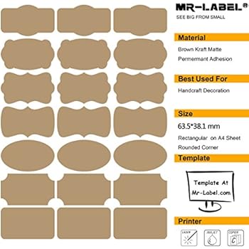 Amazon.com: brown labels stickers 1-48 of over 2,000 results for "brown labels stickers" RESULTS 4" x 2" Kraft Labels Stickers, Letter Size with Print Templates - 30 Sheets, Pack of 300 1,049 $919 ($0.03/Count) Get it as soon as Tue, Aug 2 FREE Shipping on orders over $25 shipped by Amazon Kraft Sticker Paper, Full Sheet Printable Brown Labels (8.5x11 in, 48 Pack) 803