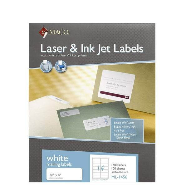4" x 6" Large Format Shipping Labels - OL959 - OnlineLabels 4" x 6" Large Format Labels - Shop blank 4" x 6" large format shipping labels on 8.5" x 14" legal size sheets (4 labels per sheet). Great for printing shipping labels and receipts in laser and inkjet printers. Standard Label Sizes | SheetLabels.com Lowest prices, best quality, and same day shipping on hundreds of round, square and rectangle shape, standard-size labels. ... 14 labels per sheet. 8.5" x 11" 4VS Full Sheet. SL111VS4 - 4 Vertical Back Slits. 1 label per sheet. 8.5" x 11" 2VS Full Sheet. SL111VS2 - 2 Vertical Back Slits. 1 label per sheet. Amazon.com: 14 Labels Per Sheet Compulabel Mailing Labels for Laser and Inkjet Printers, 4 x 1 1/2 Inches, Permanent Adhesive, 14 per Sheet, 250 Sheets per Carton (331604), White 3 $7631 ($0.02/Count) Get it Thu, Oct 20 - Mon, Oct 24 FREE Shipping MACO Laser/Ink Jet White Address Labels, 1-1/2" x 4", 14 per Sheet, 1400 per Box (ML-1450) 13 $1795 ($0.01/Count) Staples Laser/Inkjet Address Labels, 1 1/3" x 4", White, 14 Labels ... These address labels make your most important messages stand out Individual labels measure 1 1/3"H x 4"W White color for an attractive look Features a permanent adhesive backing for a secure bond 14 labels per sheet, 100 sheets per pack; 1400 total labels Compatible with laser and inkjet printers for maximum flexibility